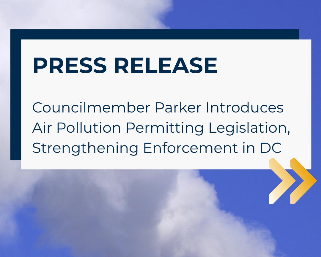FOR IMMEDIATE RELEASE January 6, 2026 Media Contact: Melissa Littlepage, mlittlepage@dccouncil.gov, 771-333-9834 WASHINGTON, DC - Today, Ward 5 Councilmember Zachary Parker is introducing the Strengthening Air Pollution Permitting Amendment Act of 2026. Councilmembers Charles Allen (Ward 6, Chair of the Committee on Transportation and the Environment), and Christina Henderson (At-Large, Chair of the Committee on Health) co-introduced the bill, which will require the Department of Energy…